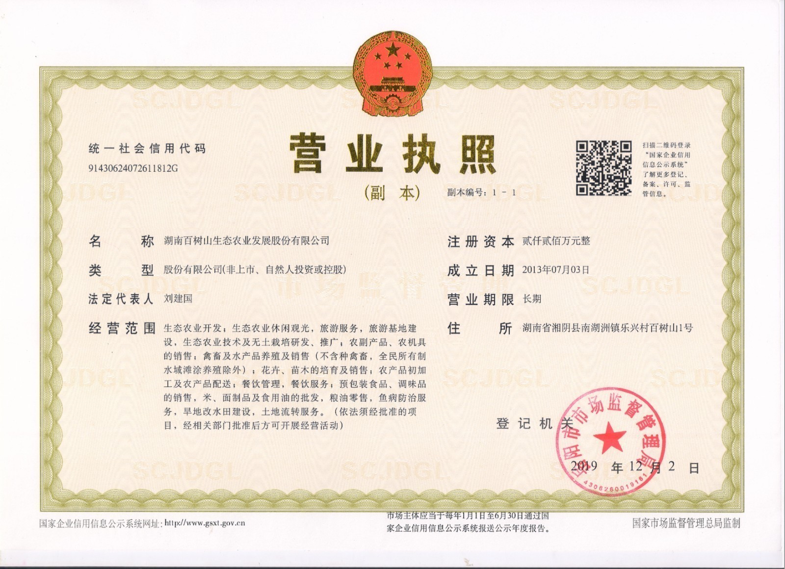 湖南百树山生态农业发展股份有限公司是湖南省农业产业化省级龙头企业,经营范围包括生态农业种植、养殖、农业产业示范、农产品加工、社区农超及配送、农业休闲观光及农业科普教育等。公司在湘阴县南湖洲镇赛头口村流转及租赁土地1066亩,累计投资7000余万元,建设集中连片高标准钢架大棚设施疏菜210亩,露天蔬菜550亩,改良水果76亩,原生态鱼塘174亩,餐饮住宿、办公及生活配套用地56亩。公司采取“龙头企业+公司+农民专业合作社+家庭农场+基地联农户+农产品加工+社区农超+配送中心”的运作模式,提供200余人的劳动就业岗位,其中有30多户贫困劳动力,平均每户每年可增收近5000元,有效促进当地农业提质增效、农民增收。公司先后获评“湖南省蔬菜特色产业园”、“湖南省高新技术企业”、“湖南省绿色食品示范基地”、“湖南省优秀绿色食品示范基地”、“湖南省休闲农业与乡村旅游五星级企业”、“农业部健康养殖小区”、“岳阳市优质初创企业”、“市级科普先进单位”、“湖南省创新创业双百优工程‘初创企业’”、“湖南省就业扶贫基地”、“国家级就业扶贫基地”、以蔬菜为主题的“国家级五星级农场”。主营产品为蔬菜、水果、淡水鱼。有21个品种获得绿色认证。